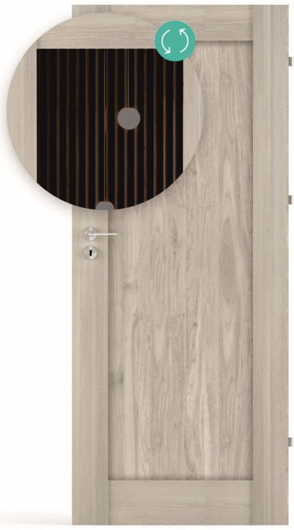 Tömör masszív keretes szerkezet. Az ajtó belső szerkezete tömör MDF, nagyon strapabíró, jó hanggátlással rendelkezik. Az üveges ajtóknál az üveg üvegezőléc nélkül kerül a helyére, az ajtók felülete illesztésmentes.